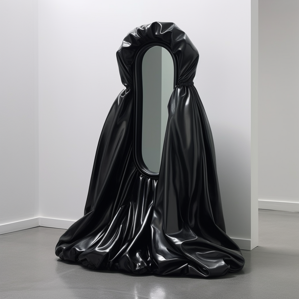 Part of the Noir Collection, the Scandal Mirror challenges conventions with its provocative aesthetic and innovative design. Characterized by its glossy black finish and embedded structure that evokes a sense of mystery and discomfort, this mirror is not just a physical reflection but a portal to introspection and art. The incorporation of dark and enigmatic elements makes this mirror a piece that immediately captures attention, sparking curiosity and discussions among observers.